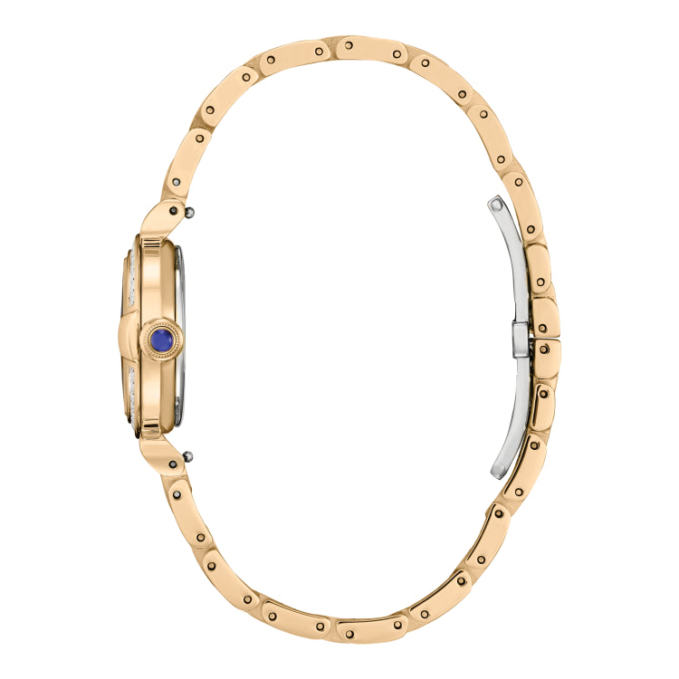 Classic lines and hints of romance make this newest timepiece to our women’s collection, the Citizen L Mae, a glamorous addition of sustainable luxury. With a 26mm case design inspired by a vintage perfume bottle and featuring the curved, sleek lines of May bells, the diamond-set bezel shape has a distinct feature at the 3 o’clock position, where the crown resembles an elegant perfume stopper.