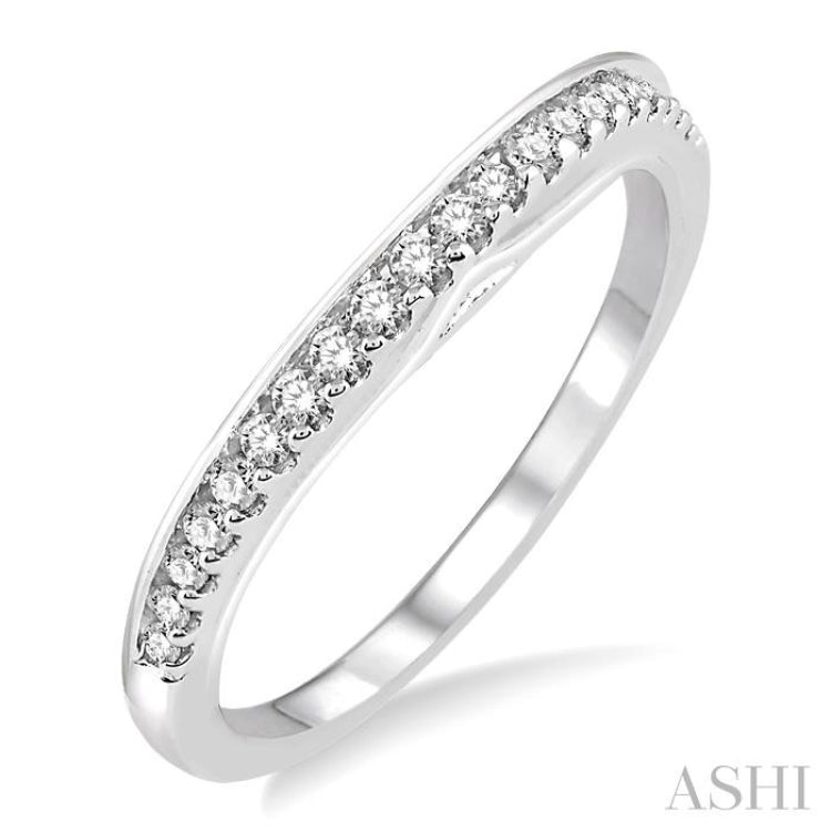 Define your love with this enthralling diamond wedding band. Fashioned in luminous 14 karat white gold this milgrain finish band is studded with 20 scintillating round cut diamonds, perfectly prong set. Total diamond weight is 1/4 Ctw.